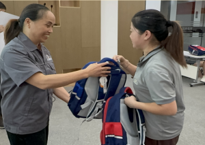 仪式开始后,公司企业文化部总监苏磊和工会主席陈剑玫女士向留守小同学发放了爱心书包和学习文具,通过家长向即将开学的孩子们送上新学期的鼓励,希望孩子们喜欢公司赠送的爱心书包和文具,公司行政总裁黄董在外地也通过微信给孩子们送上祝福与鼓励。